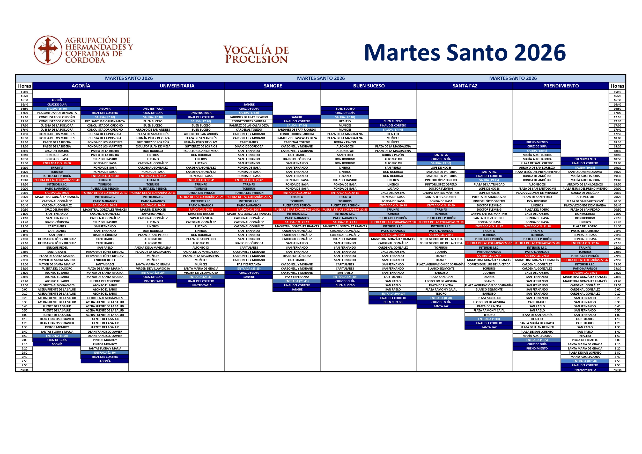 Horarios e Itinerarios Martes Santo Córdoba 2026